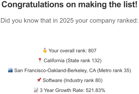 To our customers, partners, and team, thank you for believing in our mission and making this milestone possible. The Inc. 5000 ranking is as much your achievement as it is ours.