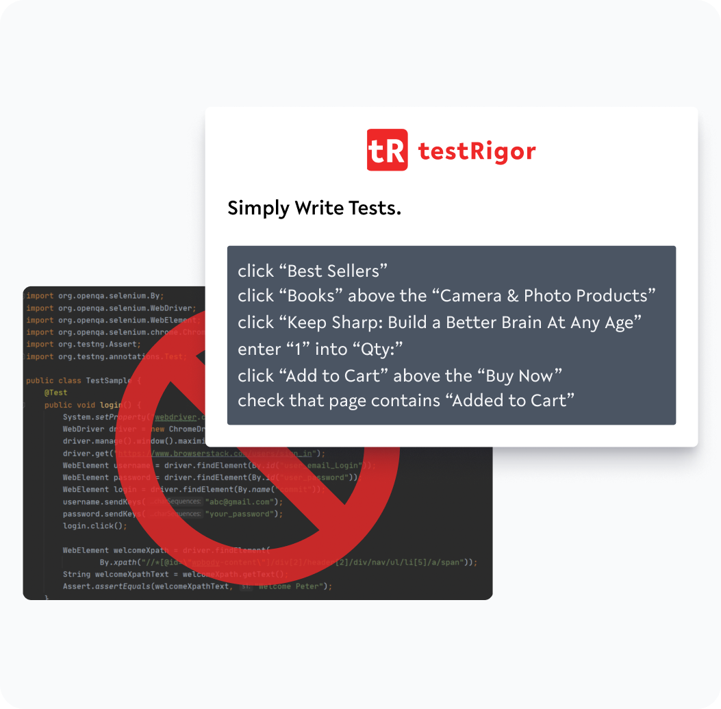 E2E tests might involve complex scenarios like 2FA, SMS, phone calls, Captcha resolution, database handling, table data, or file manipulation, which takes most test automation tools a lot of test steps to do. But that is not the case with testRigor. Its plain English command library is super easy to follow and is very powerful, solving complex operations with single-line statements.