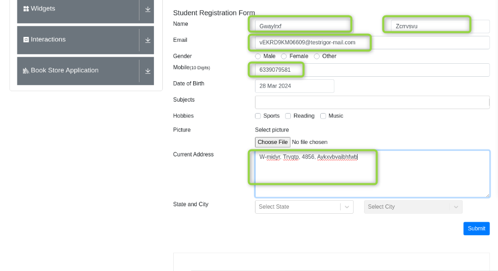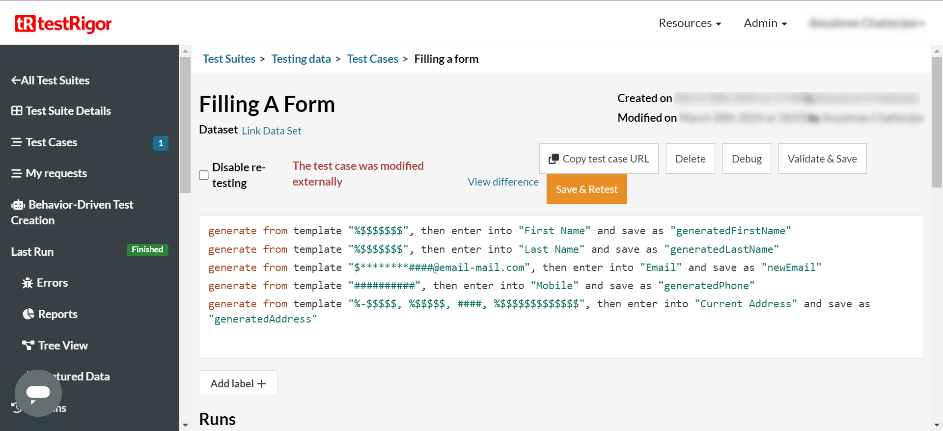 In the following test case, we will use testRigor’s unique data generation commands to fill the form.