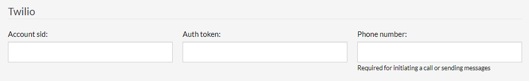 You’ll need to provide your Account sid and Auth token. A phone number is optional if receiving SMS messages is the only purpose; however, to initiate calls or send SMS messages, it will be necessary.